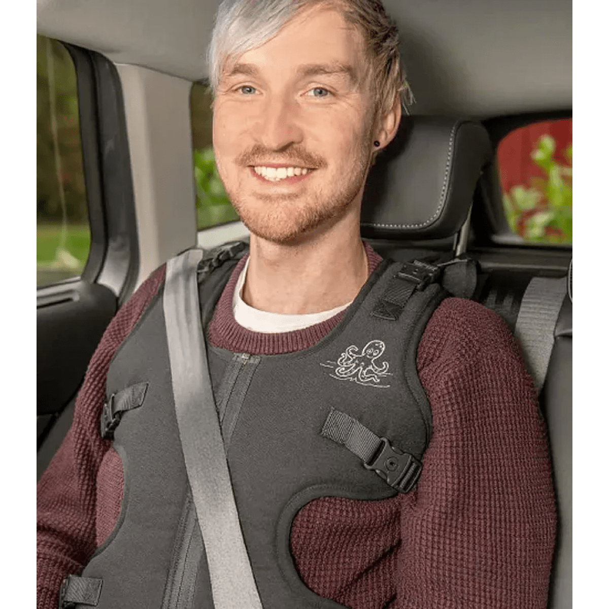 Позиционный жилет Thomashilfen Octopus (Томасхилфен Октопус) предлагает систему, которая поддерживает правильное положение пользователя в автомобиле. Это особенно важно, если трехточечный ремень безопасности автомобиля не обеспечивает достаточную поддержку. Жилет равномерно распределяет нагрузку по телу, что значительно снижает риск травм при резком торможении.
