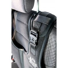 Одной из ключевых характеристик жилета являются запирающиеся пряжки. Эти элементы конструкции предотвращают случайное расстёгивание ремней во время движения, что обеспечивает дополнительный уровень безопасности. Установка жилета проста и интуитивно понятна. Благодаря минимальному количеству деталей, его можно быстро надеть или снять, что значительно упрощает процесс трансформации и адаптации в зависимости от требований к поездке.