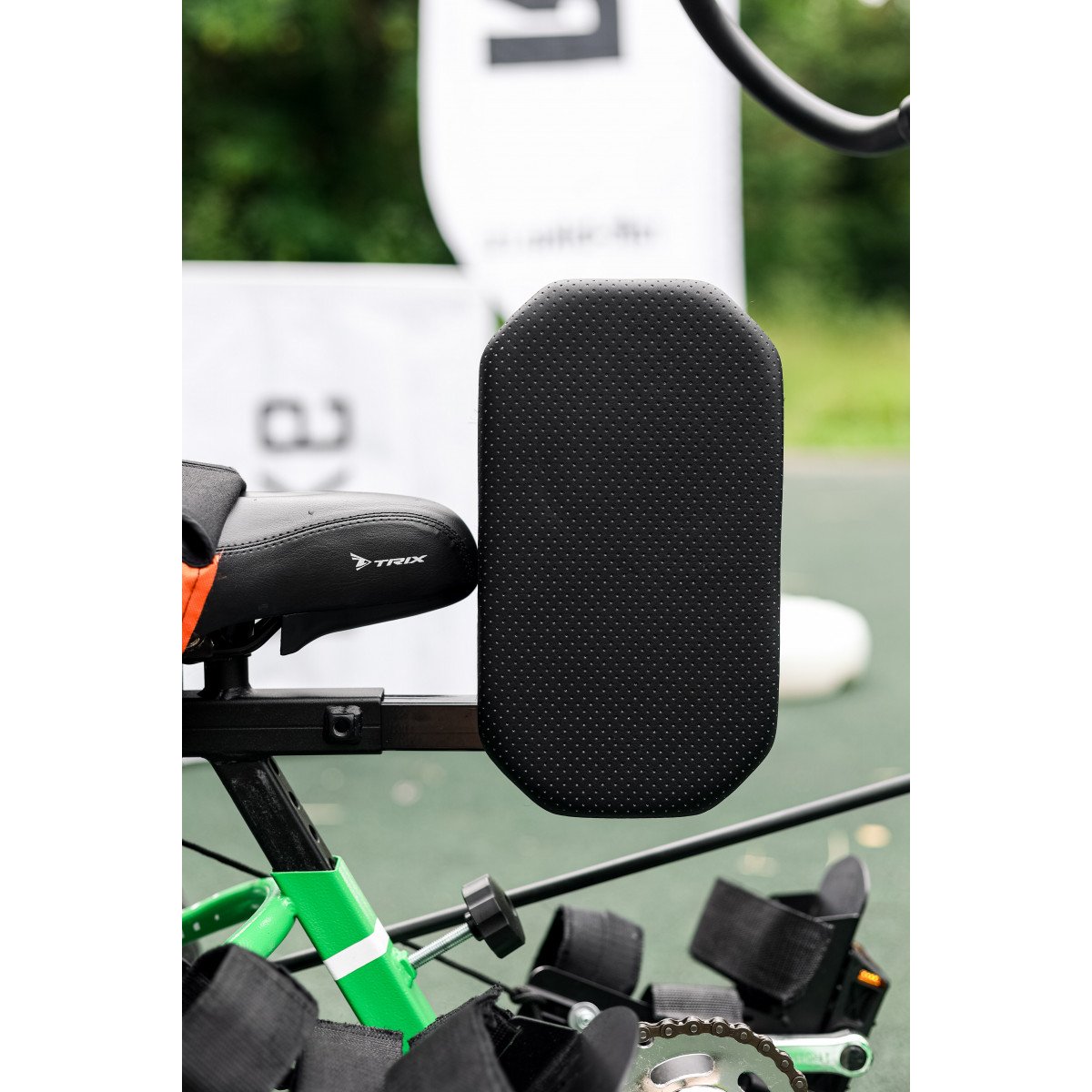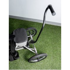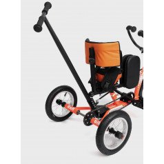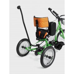 Велосипед обладает лёгким ходом благодаря уникальной геометрии рамы. Даже при минимальном усилии велосипед приводится в движении, что позволяет использовать его даже деткам со слабым тонусом мышц. Конструкция рамы выполнена таким образом, что велосипед легко может быть собран и разобран. Компактный, легко помещается в багажник автомобиля. Эргономическое сидение регулируется по высоте. Стояночный тормоз блокировки движения позволяет использовать велосипед в качестве комнатного тренажёра.