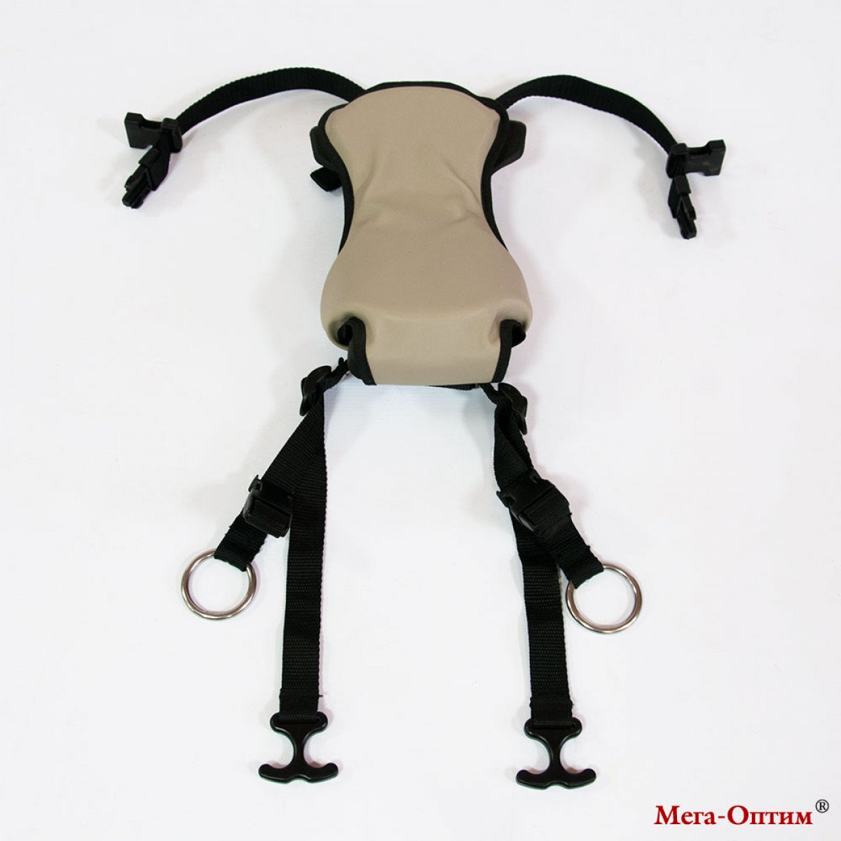Опоры-ходунки Мега имеют целый ряд специальных приспособлений, которые обеспечивают надёжную фиксацию различных частей тела, что крайне важно для достижения правильного положения во время занятий. Все элементы крепления легко устанавливаются и снимаются, что позволяет адаптировать конструкцию ходунков в зависимости от индивидуальных потребностей конкретного пользователя.