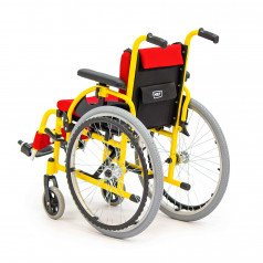 Пневматические задние колёса обеспечивают мягкий ход, а передние литые колёса не требуют обслуживания и добавляют устойчивости. Для фиксации на месте предусмотрены боковые стояночные тормоза. На спинке расположен небольшой карман — в нём удобно хранить необходимые мелочи.