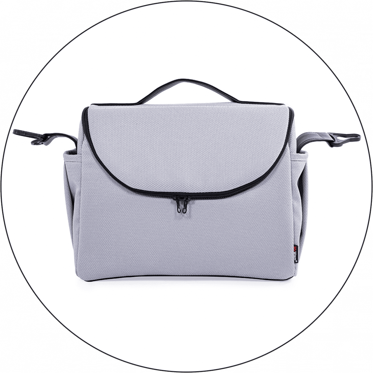 Сумка для аксессуаров для MyWam Mewa — удобная опция для хранения нужных вещей во время прогулок. Помогает держать всё под рукой: от салфеток до личных предметов ребёнка. Легко крепится к коляске и не мешает движению.