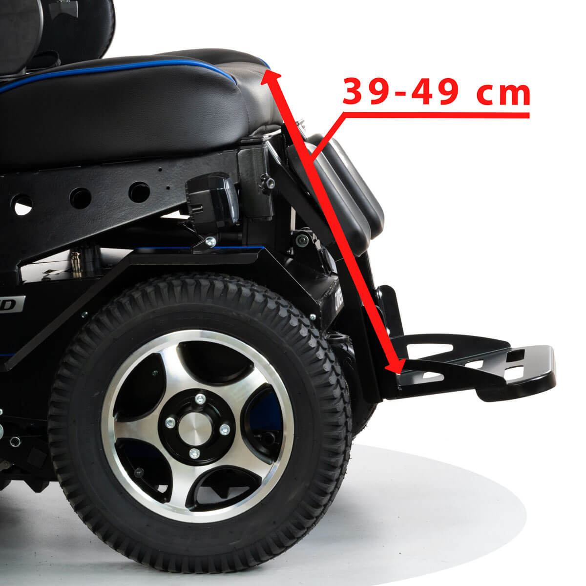 Слитная подножка значительно облегчает пересаживание к коляску, так как не имеет боковых элементов и шарниров. Также слитная конструкция исключает западание ноги между опорами. Подножка является фиксированной и не регулируется по углу наклона. Опора ног имеет места крепления ремня для фиксации ступней от выпадания.