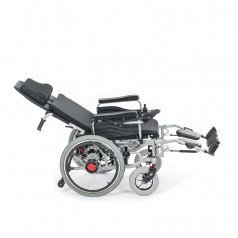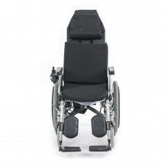 Главная особенность коляски Met Comfort 42 (30 AH) (Мет Комфорт 42 (30 AH)) — это возможность длительного пребывания лёжа или полулежа. Пользователь может самостоятельно откинуть спинку и поднять подножку, чтобы перейти в горизонтальное положение.