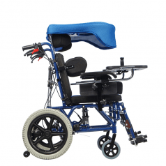 В комплекте с коляской идет съёмный столик, который оснащён антиспастической ручкой. Столик обеспечивает необходимую поддержку верхней части туловища, что способствует общей стабильности и комфортному положению ребёнка. Антиспастическая ручка активно помогает снижать повышенный тонус мышц. Кроме того, в комплект входит съёмный капюшон с прозрачной вставкой, который защищает ребёнка от солнечных лучей и неблагоприятных погодных условий.