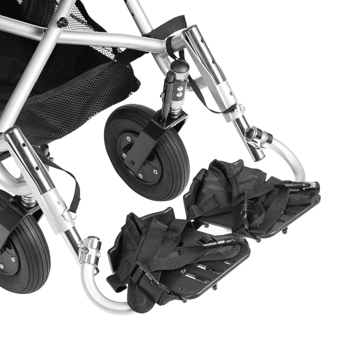 - Раздельные откидные подножки с упором для пяток регулируются по длине