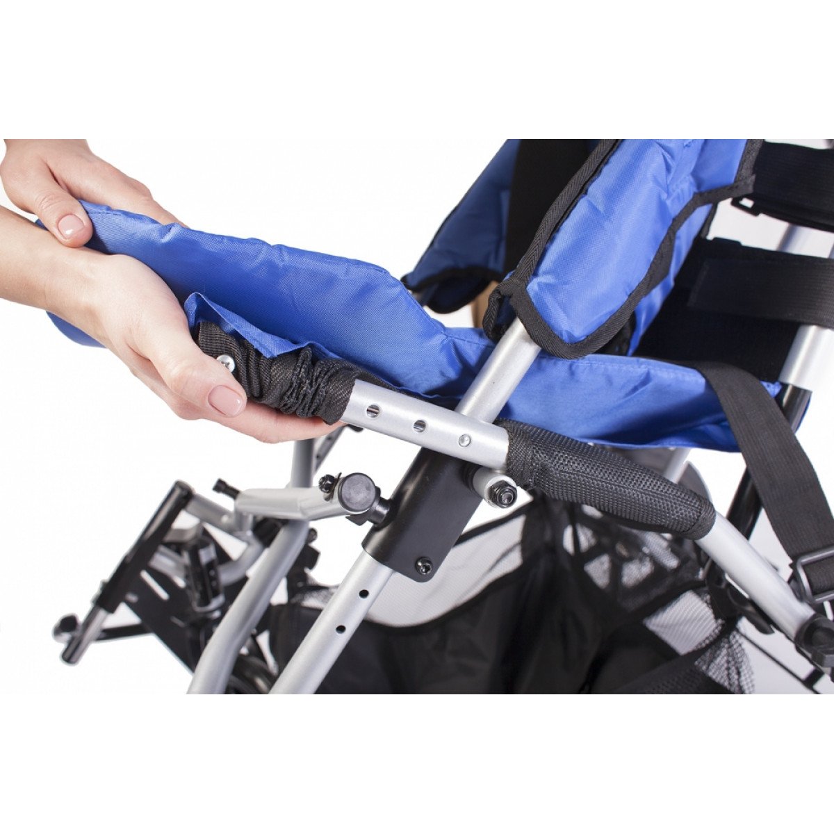 Одной из ключевых особенностей кресла-коляски KY874A является её способность складываться с помощью механизма типа «трость». Угол наклона сиденья составляет 30°. Это помогает поддерживать правильное положение тела и способствует улучшению общего самочувствия во время прогулки. К тому же, кресло-коляска оснащена передними колёсами с амортизаторами, которые значительно снижают ударную нагрузку на позвоночник ребёнка.