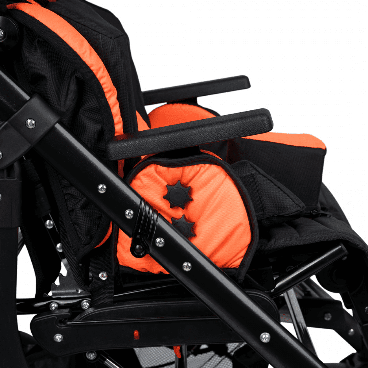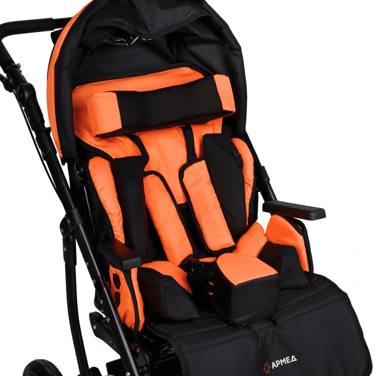 Армед Эвита Нео — современная коляска российского производства, разработанная для ежедневного ухода и прогулок с детьми с ДЦП и другими двигательными нарушениями. Она сочетает комфорт, безопасность и компактность: лёгкая складная рама, съёмные колёса и манёвренные передние колёсики упрощают хранение и транспортировку, а пневматические шины обеспечивают мягкий ход по любым дорогам.