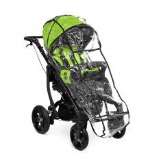 Для фиксации и поддержки ребёнка предусмотрены пятиточечный ремень, съёмный подголовник, боковые фиксаторы и абдуктор. Сиденье можно установить как лицом к родителю, так и по ходу движения, а от непогоды защищают регулируемый капюшон и тёплая накидка на ноги.