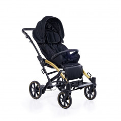 Коляска оснащена анатомическим сиденьем с мягкими вставками и регулируемыми подушками, которые обеспечивают устойчивость и поддержку корпуса. Уникальная функция «колыбель» позволяет синхронно менять угол наклона спинки и сиденья, переходя от активного положения к расслабленному. Надёжные ремни стабилизируют таз и препятствуют смещению во время движения.