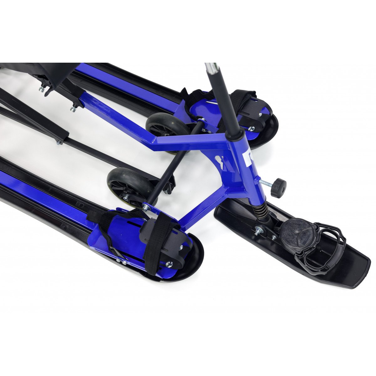 - Снегокат оснащён широкими откидными колёсами, которые позволяют перемещать его как по асфальту, так и по снегу