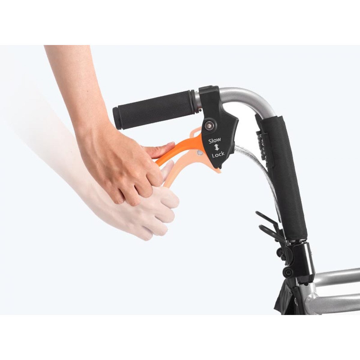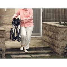 Рама выполнена из облегчённого алюминия — коляску легко сложить, перенести и разместить в багажнике. Продуманная система тормозов позволяет быстро зафиксировать коляску без лишних усилий: управление доступно прямо с ручек, что снижает нагрузку на спину сопровождающего. Это особенно удобно для пожилых людей или тех, кто сопровождает регулярно.