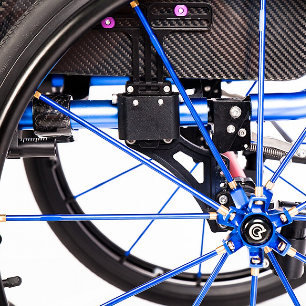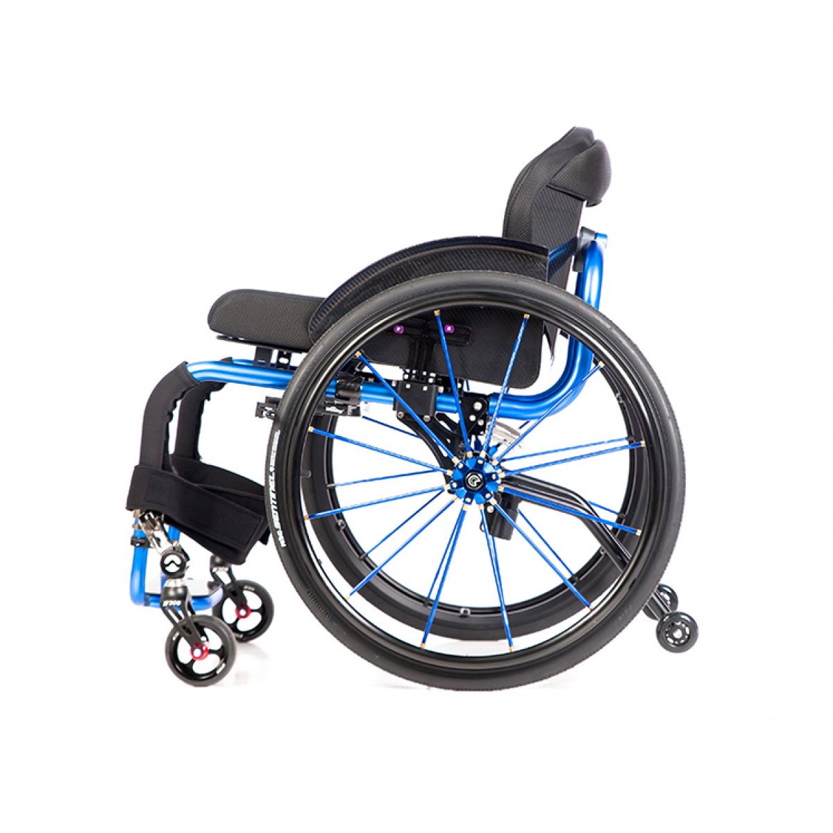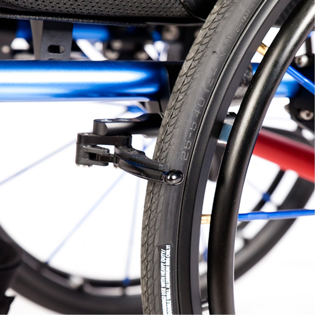 Модель обеспечивает точную настройку под пользователя: спинка регулируется по высоте и углу наклона, а положение приводных колёс можно менять для более удобной и эффективной посадки. Единая подножка настраивается по высоте, помогая правильно расположить ноги и сохранить устойчивое положение корпуса.