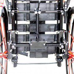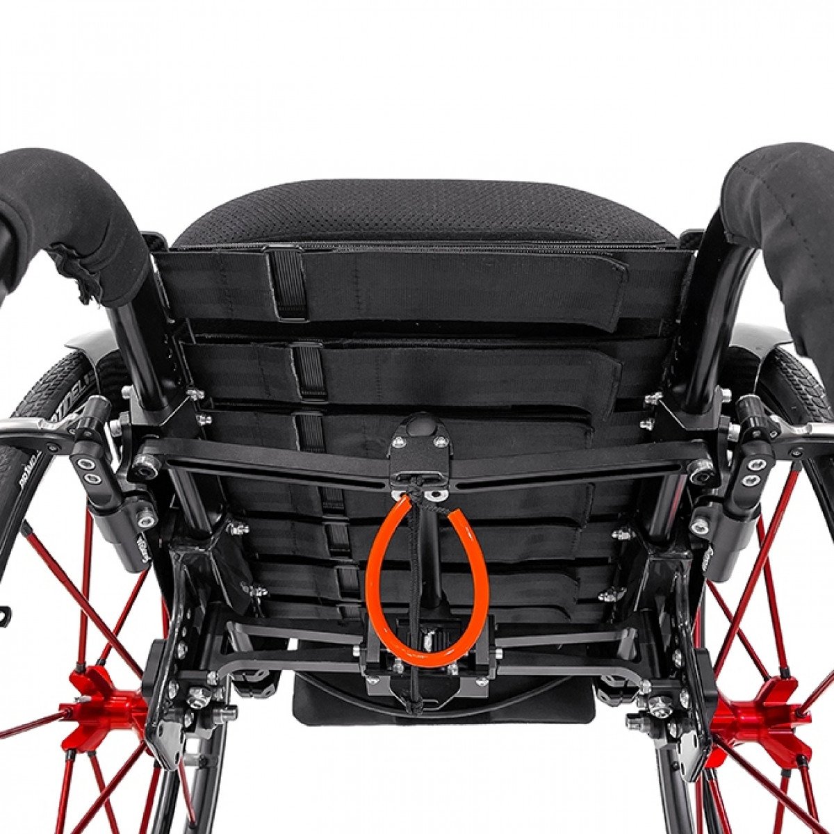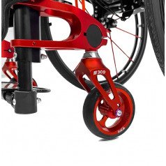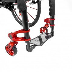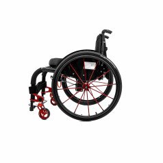Коляска адаптируется под пользователя за счёт регулировки посадки и удобных съёмных подлокотников с боковой защитой. Пневматические колёса обеспечивают более мягкий ход, а амортизаторы в вилках передних колёс сглаживают неровности и снижают нагрузку при движении. Приводные колёса можно быстро снять, что упрощает транспортировку.