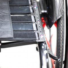 Складная рама помогает компактно разместить коляску при хранении или перевозке, сохраняя жёсткость конструкции. Обода с антискользящим покрытием облегчают управление, а стояночные тормоза с регулировкой обеспечивают контроль и безопасность при остановке.