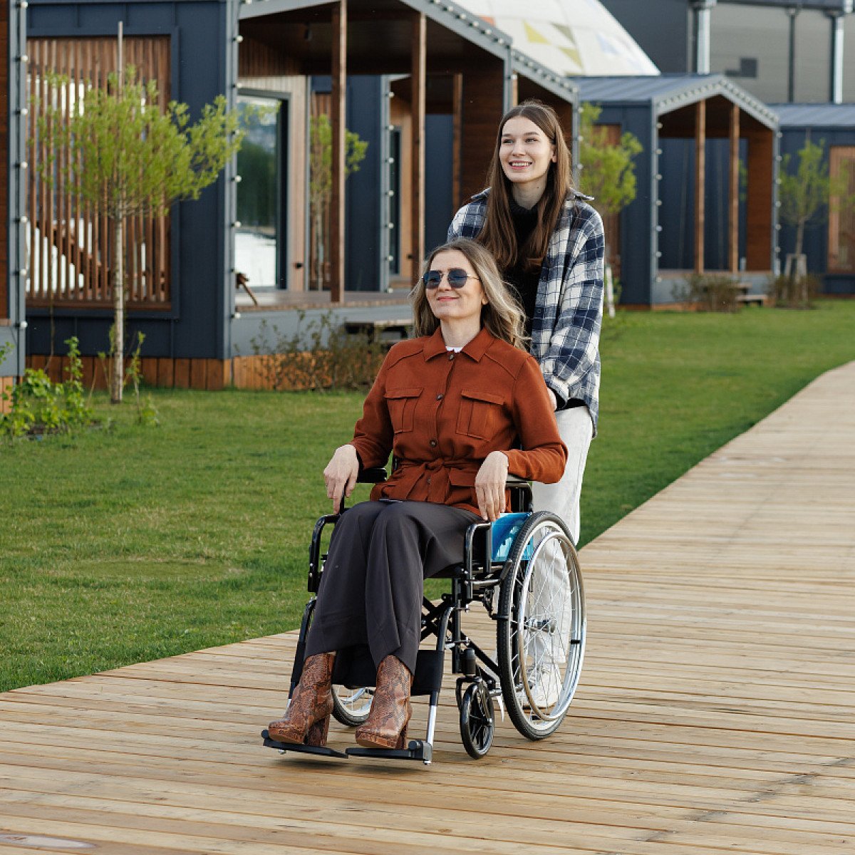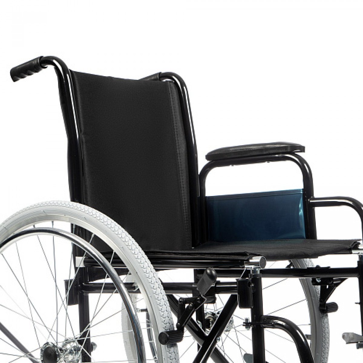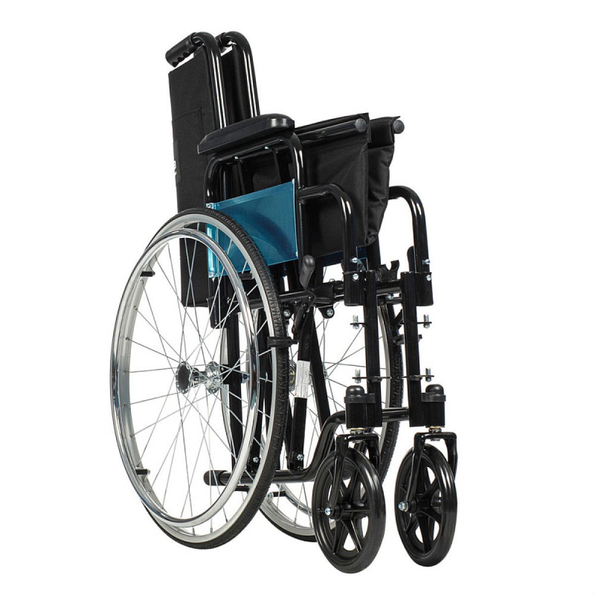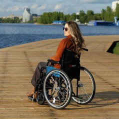 Коляска легко складывается без инструментов, а быстросъёмные задние колёса позволяют быстро подготовить её к транспортировке. Ручные стояночные тормоза обеспечивают фиксацию при остановке и делают пересаживание безопаснее. Для сопровождающего предусмотрены упоры, которые помогают преодолевать небольшие препятствия.