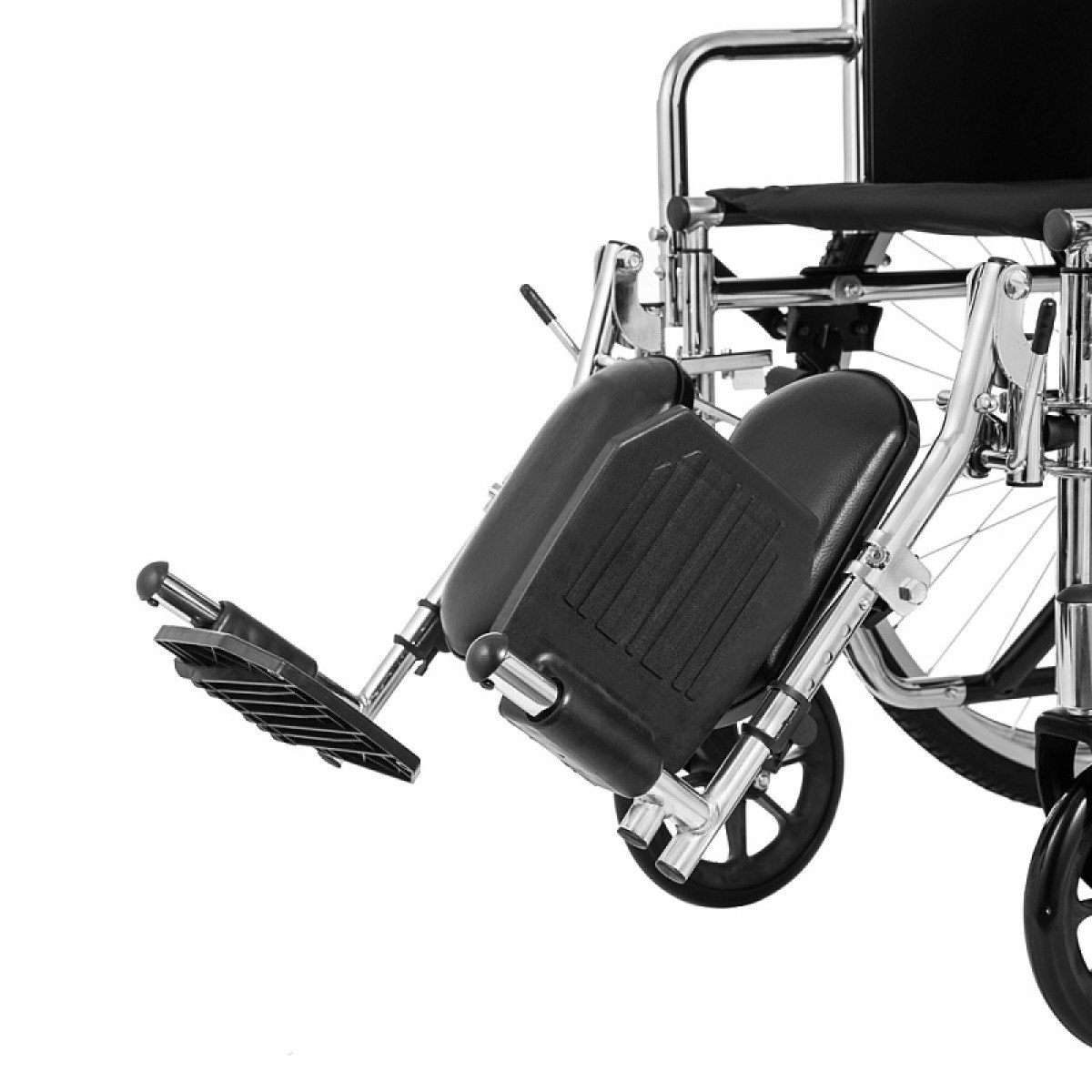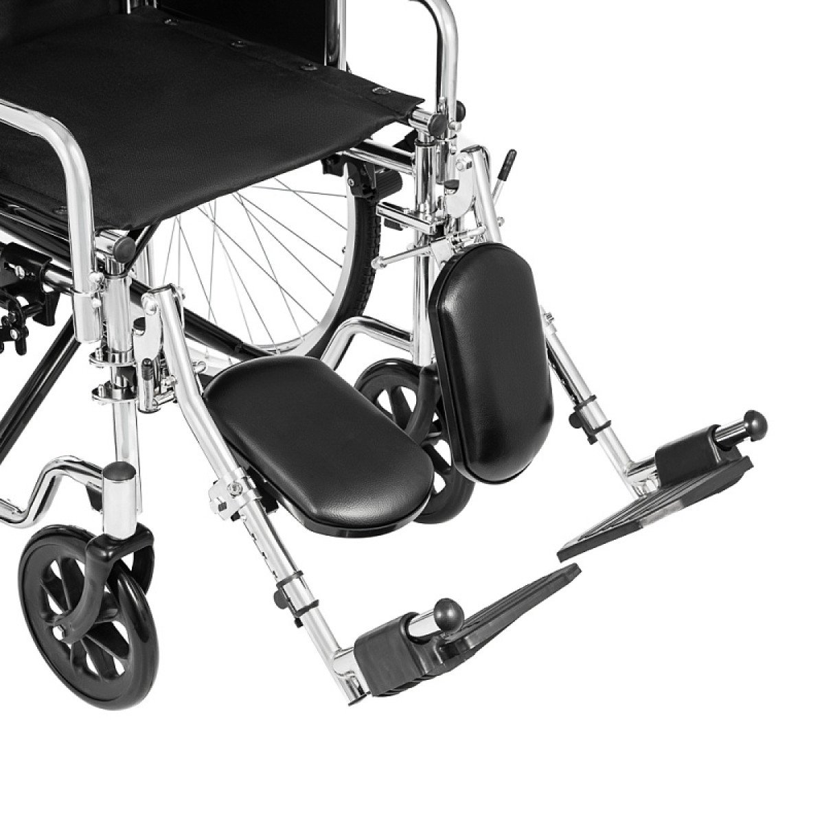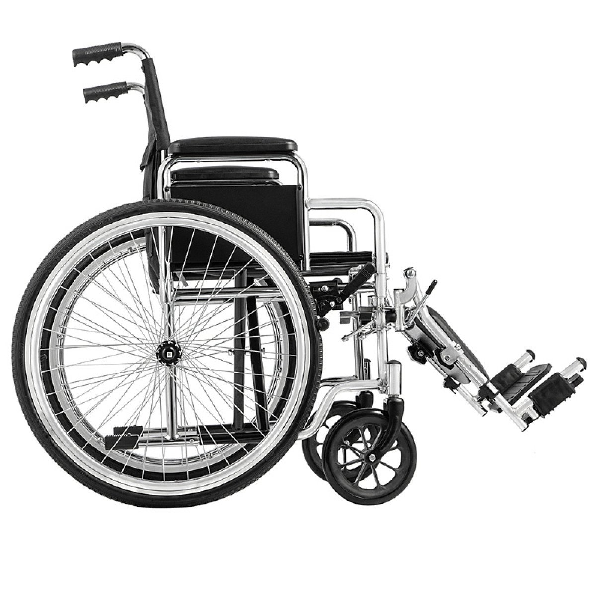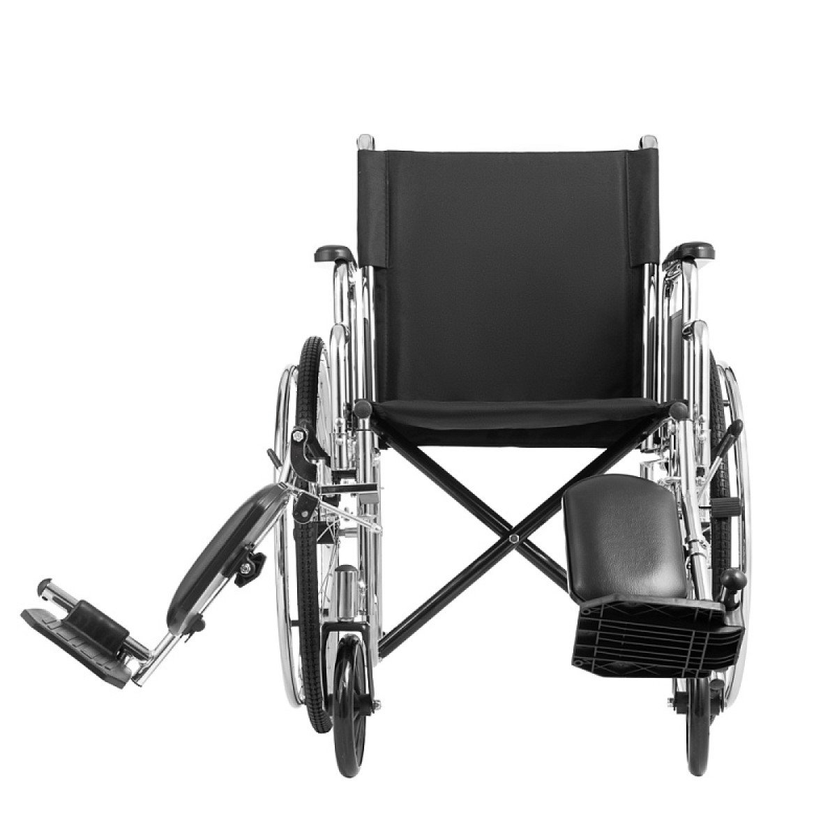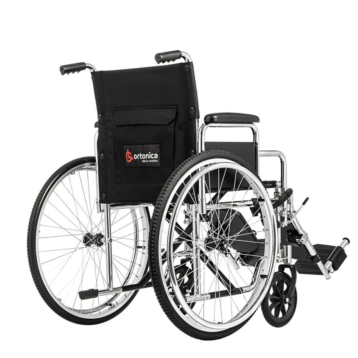 Хромированное покрытие защищает раму от коррозии и продлевает срок службы. Коляска быстро складывается без инструментов, а быстросъёмные задние колёса делают её удобной для перевозки и хранения. Для сопровождающего предусмотрены ручки, которые упрощают управление.