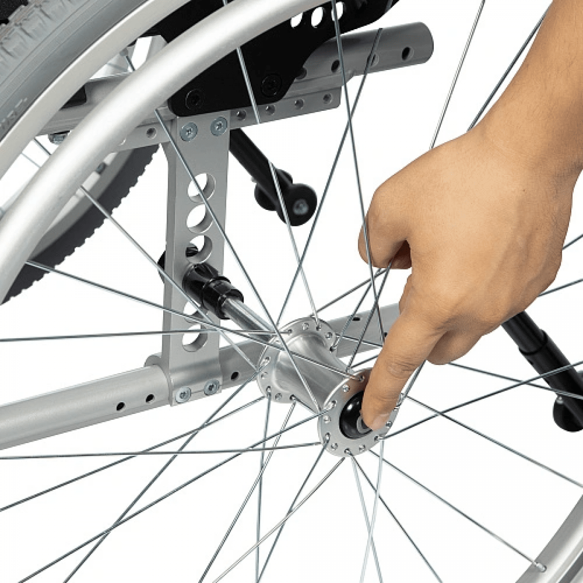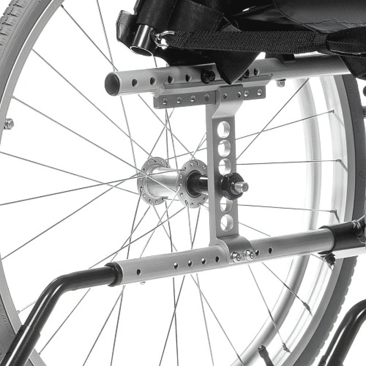 - Съёмные колесные антиопрокидыватели регулируются по длине