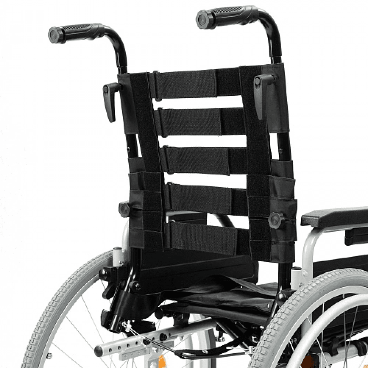 Спинка Ortonica Recline 300 с ремнями натяжения регулируется по углу наклона, высоте и глубине, позволяя настроить максимально удобное положение для пользователя при длительном нахождении в коляске. Быстросъёмные задние колёса с кнопочной фиксацией могут быть отрегулированы по вертикали и горизонтали, передние колёса – по вертикали и углу наклона.