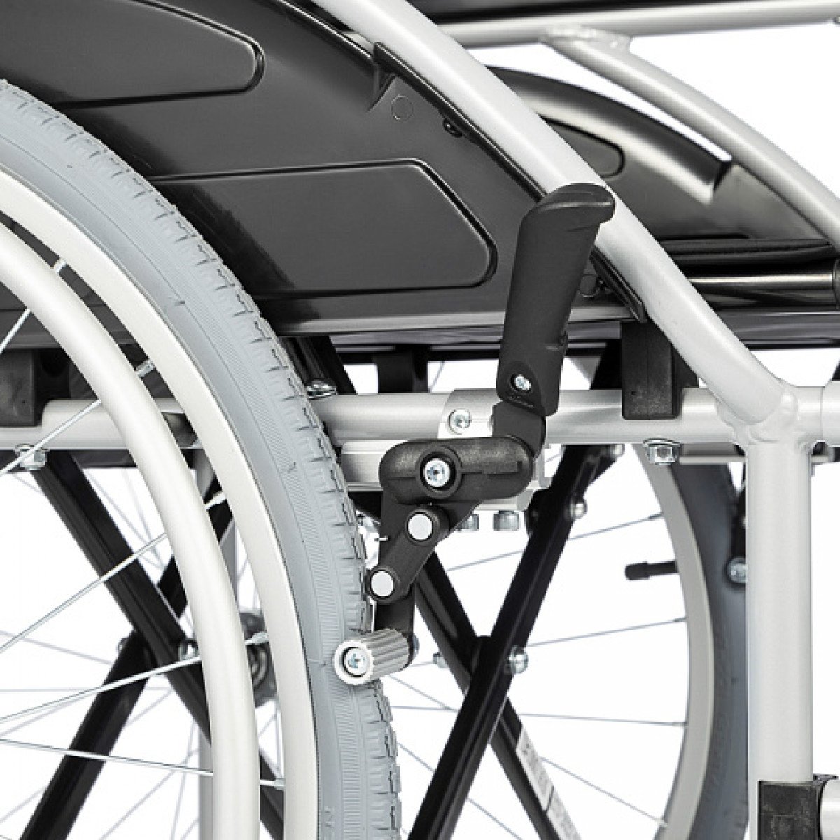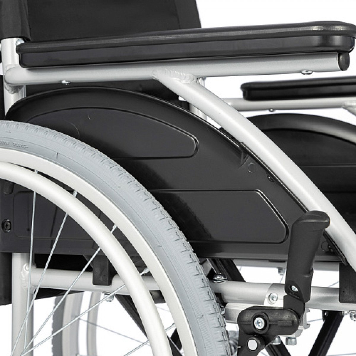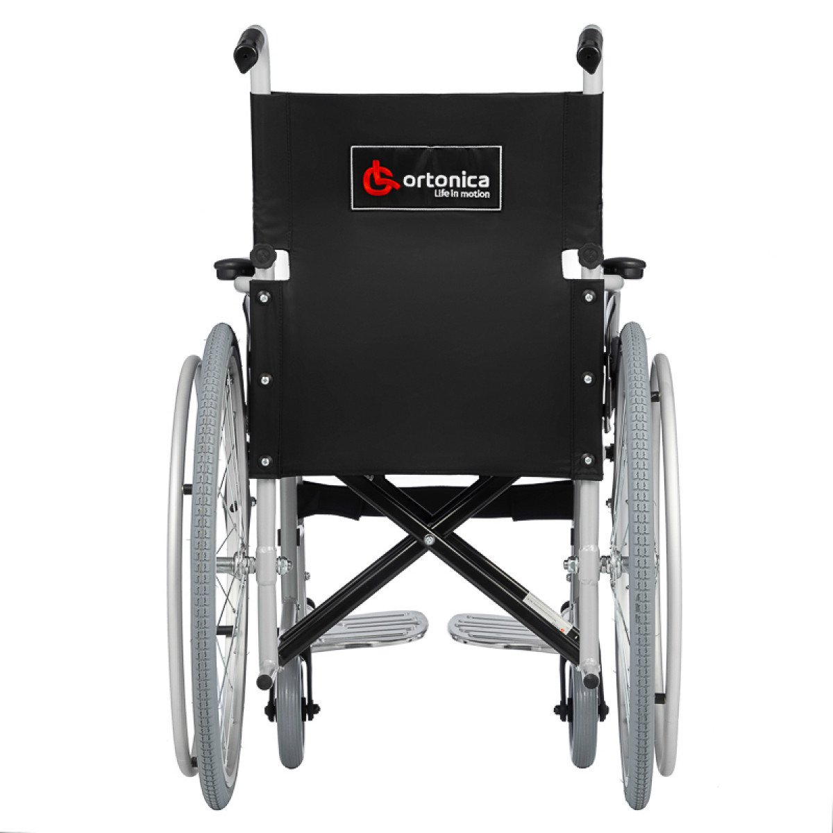 Для сопровождающего предусмотрены съёмные ручки и упоры, а задние колёса оснащены надёжными стояночными тормозами для безопасной фиксации коляски.