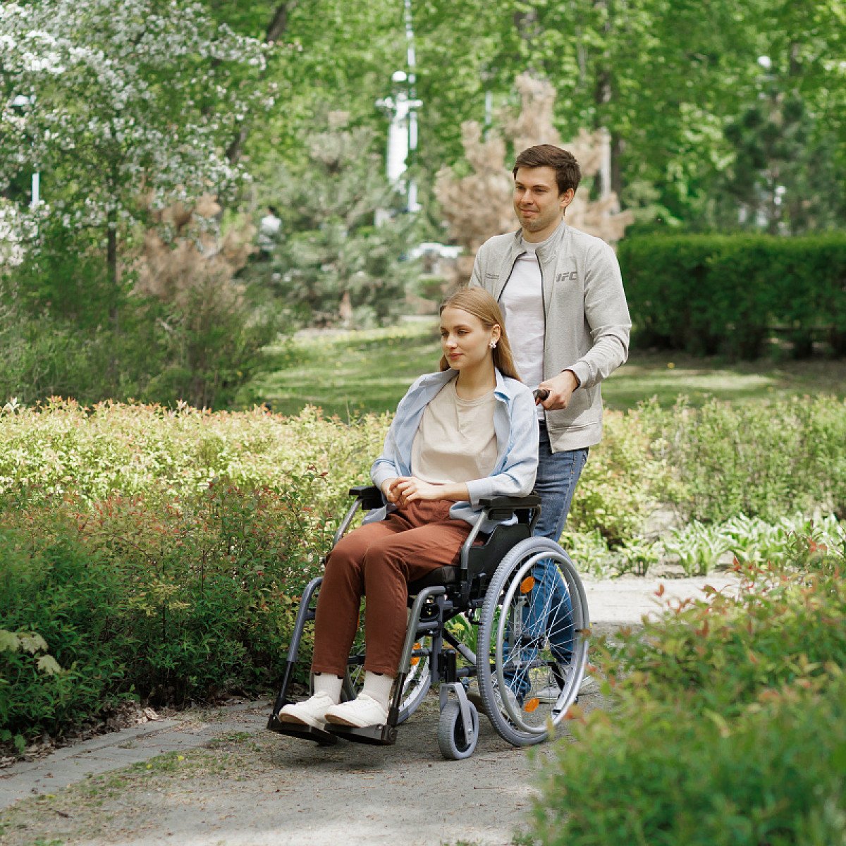 Коляску можно точно настроить под себя: задние колёса регулируются по высоте и выносу, передние — по высоте и углу наклона. Это позволяет изменить посадку и поведение коляски в движении.