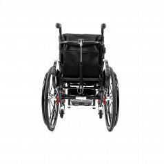 Механизм подъёма работает плавно и фиксируется в нужном положении, а ремни обеспечивают надёжную поддержку и безопасность. Вилки передних колёс регулируются по высоте, что помогает точнее настроить посадку. Обода с антискользящим покрытием упрощают управление, а стояночные тормоза обеспечивают контроль при остановке.