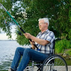 Для удобства пользователя предусмотрены съёмные подлокотники, регулируемые подножки и ручки для сопровождающего. На спинке есть карман для необходимых мелочей. Модель оптимально подходит для передвижения по ровным покрытиям и доступна в разных вариантах ширины сиденья.