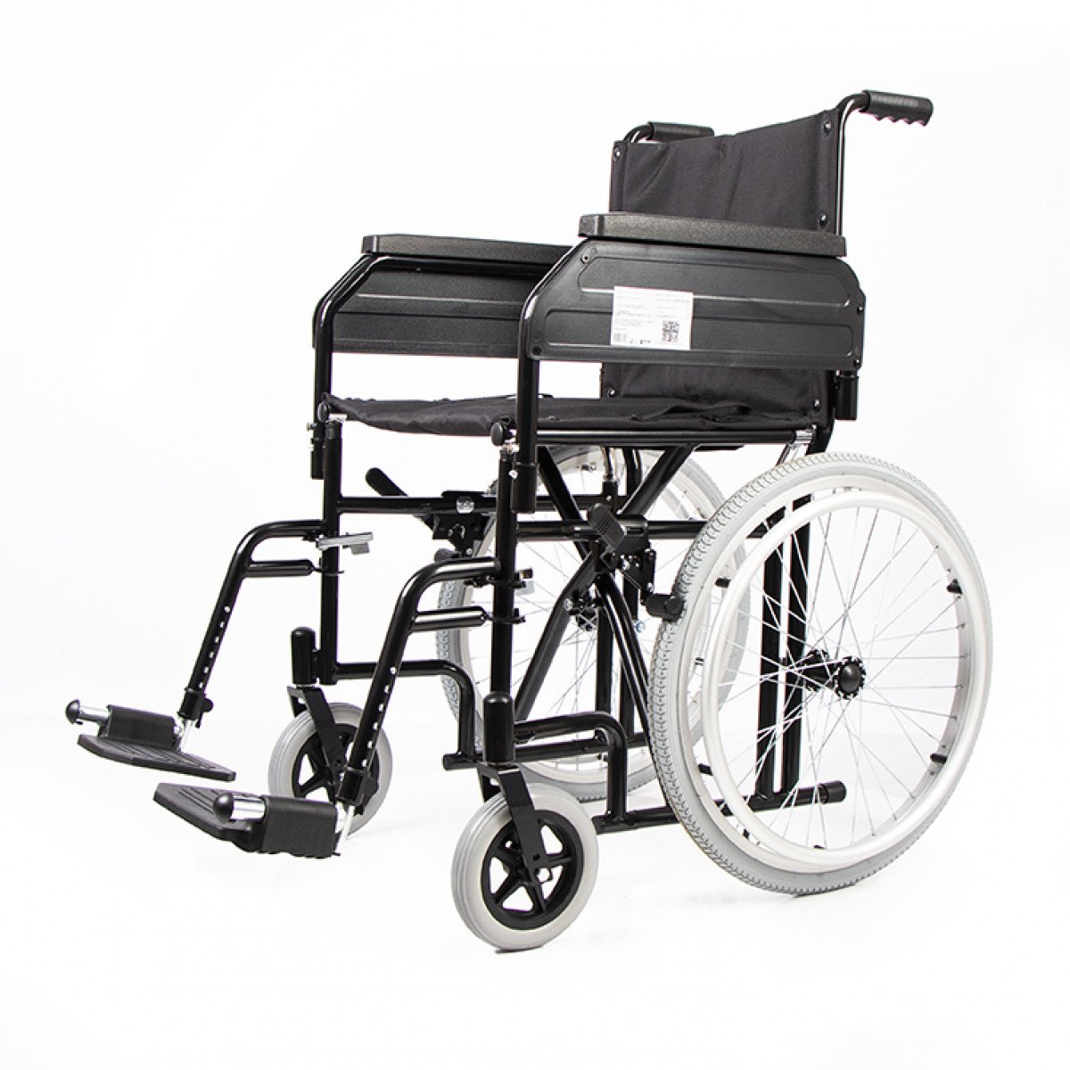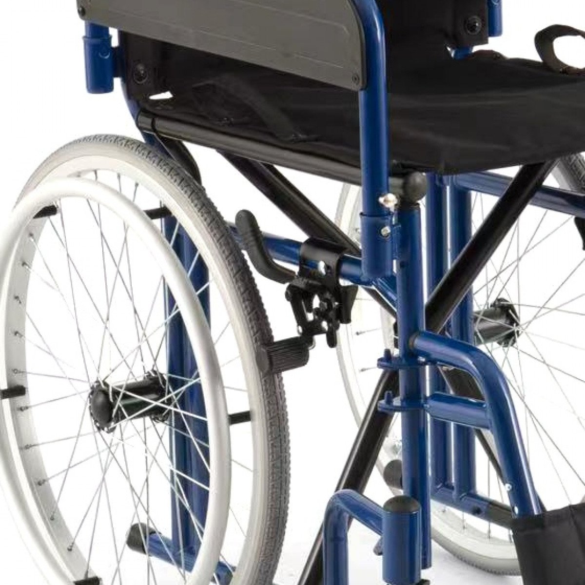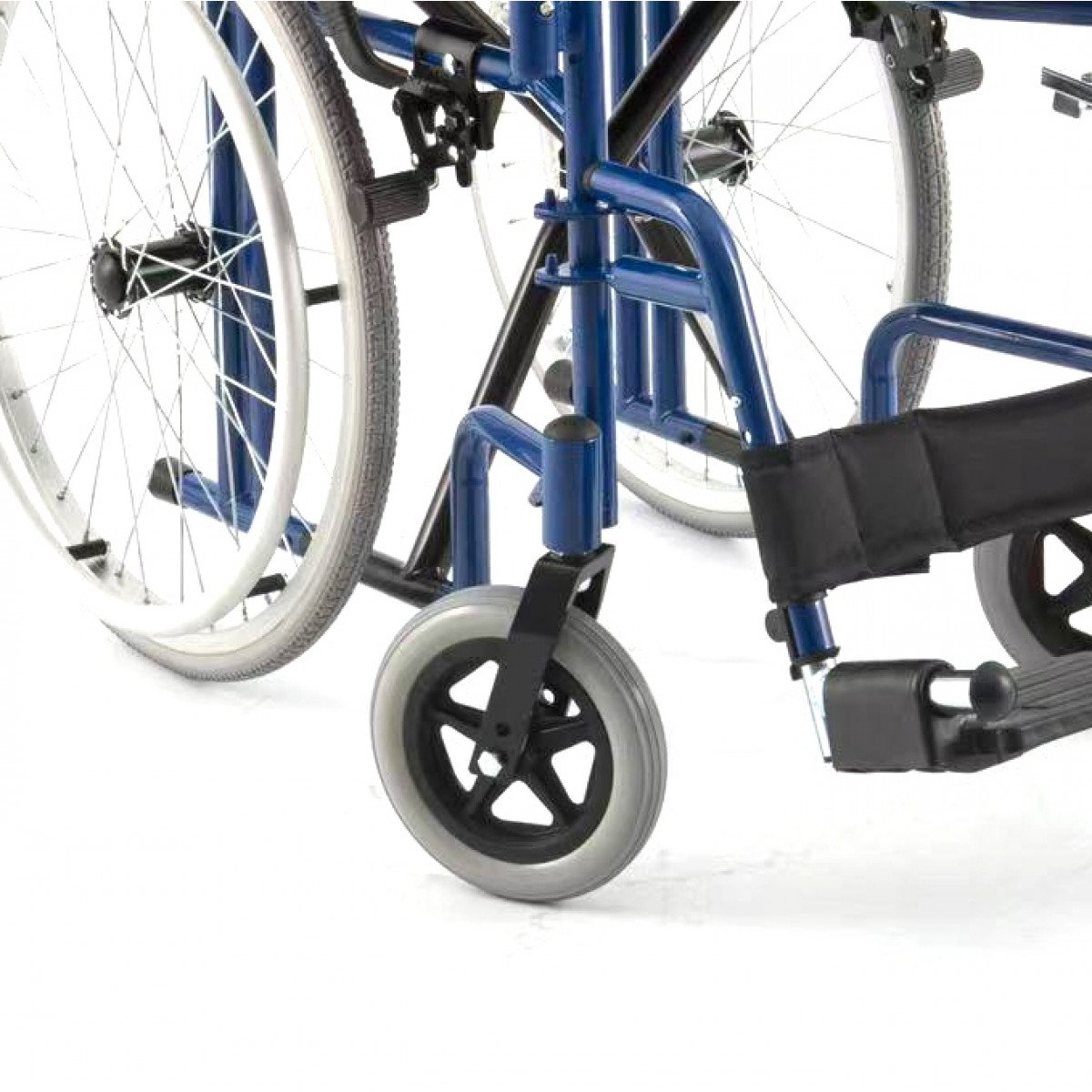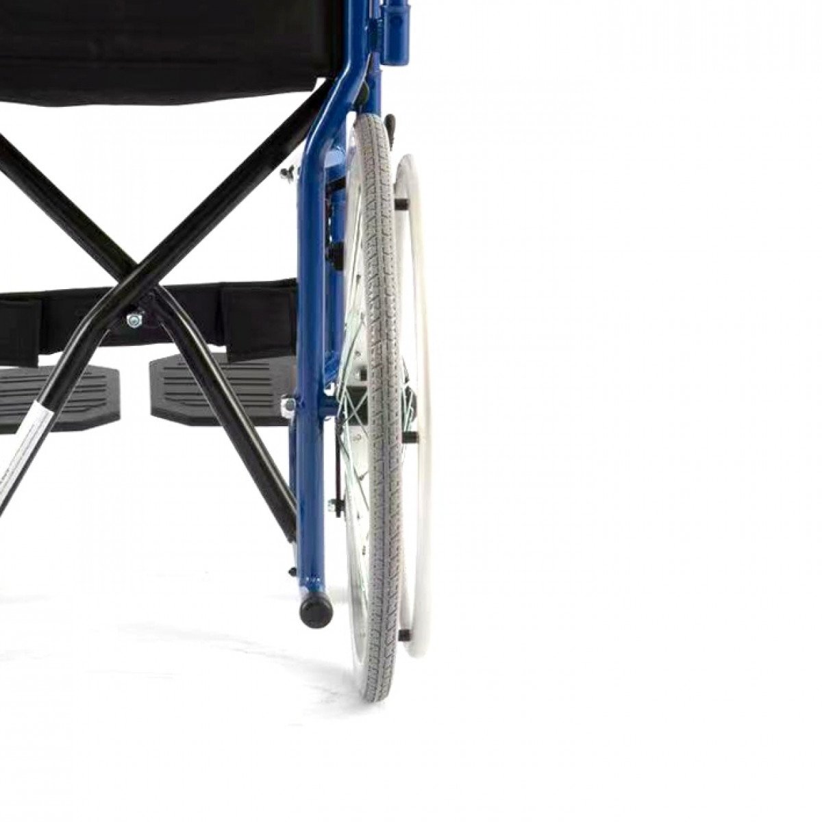 Рама выполнена из стали с антикоррозийным покрытием, что повышает долговечность конструкции. Коляска складывается без инструментов, а спинка оснащена ручками для сопровождающего. Сиденье регулируется по высоте в двух положениях благодаря регулировке вилки переднего колеса. Подлокотники откидываются или снимаются, чтобы упростить посадку и пересаживание.