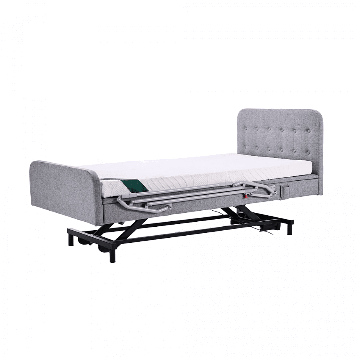 Регулировка высоты спального места и возможность изменять угол наклона изголовья и изножья позволяют легко настроить кровать в соответствии с индивидуальными предпочтениями, что сводит к минимуму нагрузку на спину и упрощает уход за пользователем. Кроме того, алюминиевые откидные боковые ограждения обеспечивают быстрый доступ и безопасность, а простота использования делает эту модель идеальным выбором для людей, которые не могут самостоятельно встать с кровати.