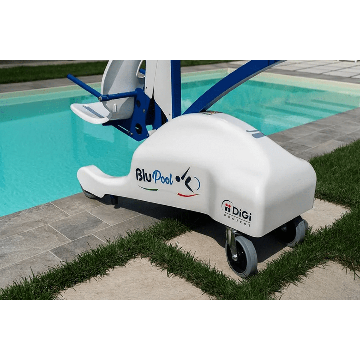 Устройство сочетает в себе эргономичную конструкцию для оператора и повышенный комфорт для пользователя. Благодаря компактным размерам и манёвренности DIGI Project BluPool легко перемещается в пространстве, а большие резиновые колеса обеспечивают плавность хода и стабильность. Специальные антикоррозийные материалы делают подъёмник идеальным решением для любых типов бассейнов, включая объекты с морской водой и хлорированной средой.