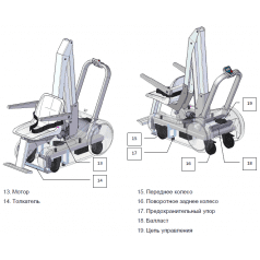- Высокая манёвренность достигается за счёт 4-х колёс с высокой амортизирующей мощностью