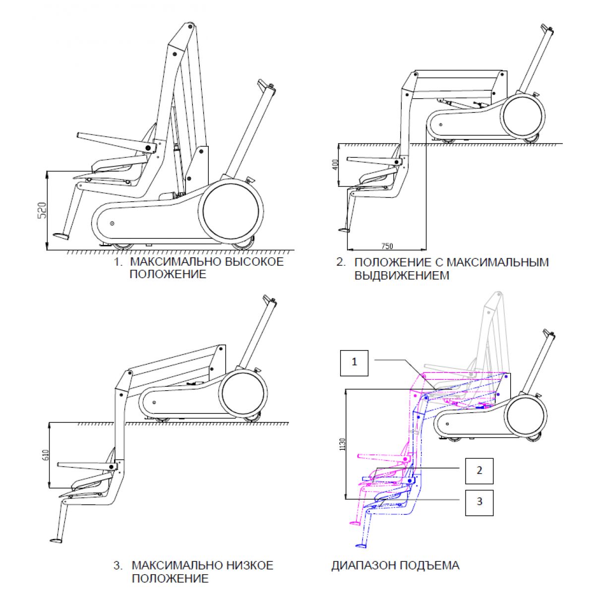 Высота подъёма: | 52 см | 48 см |