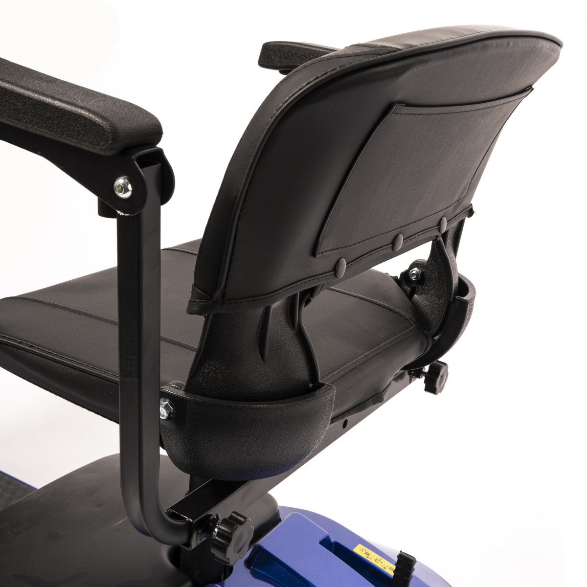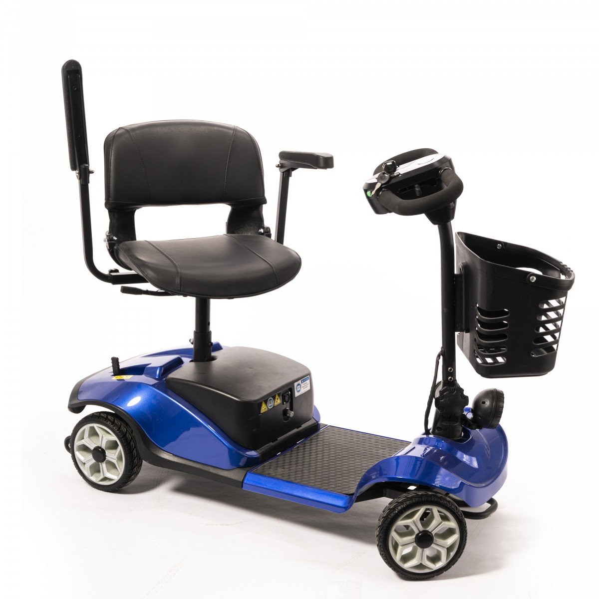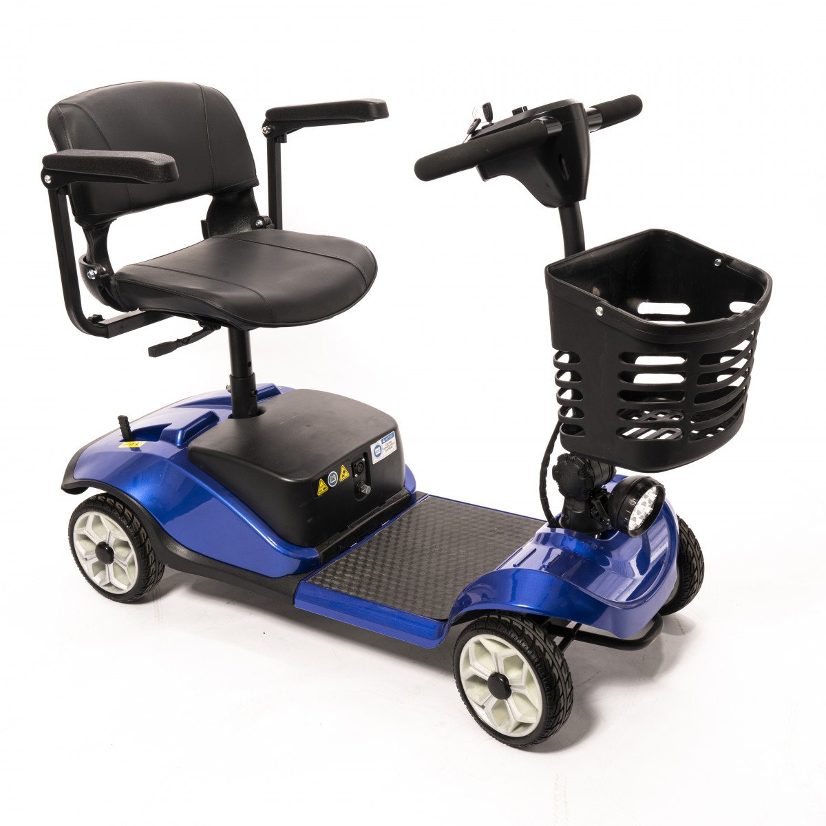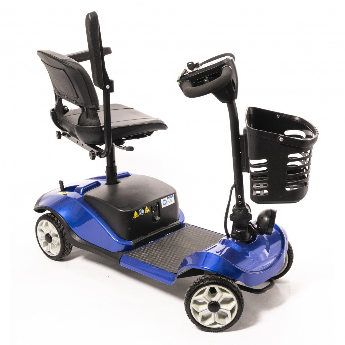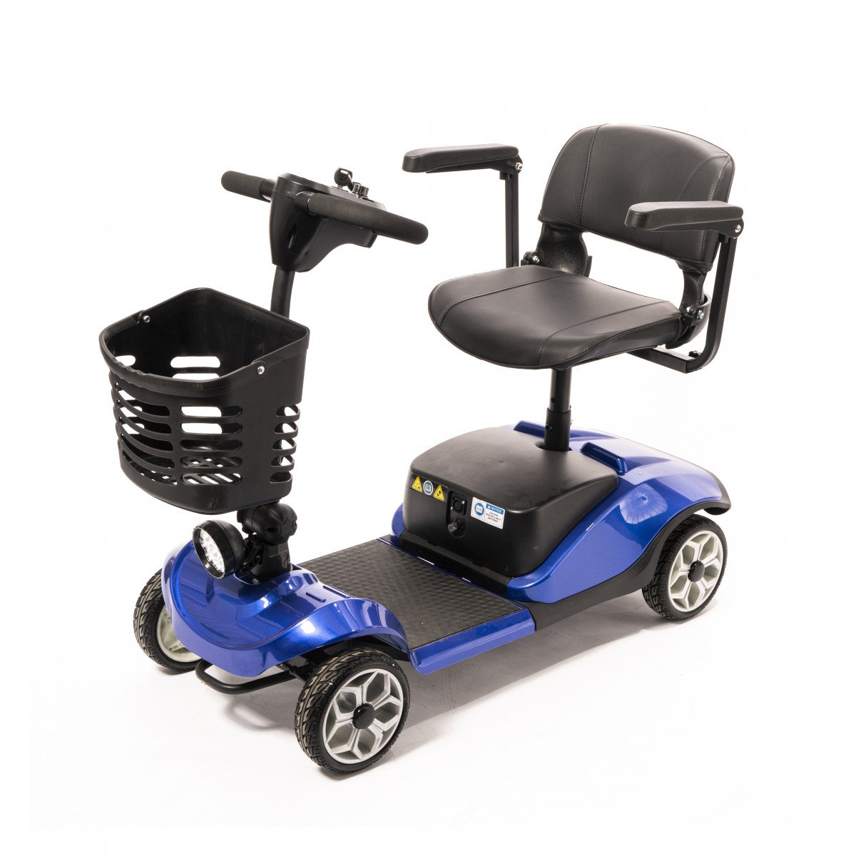 Он оснащён удобным рулём с панелью управления и поворотным сиденьем, которое включает откидывающиеся подлокотники, что значительно упрощает посадку на кресло даже для пользователей с проблемами опорно-двигательного аппарата. На передней панели руля расположены важные функции: переключатель «включить/выключить», индикатор заряда батареи, регулятор скорости, включатель передней фары, звуковой сигнал и акселераторы.