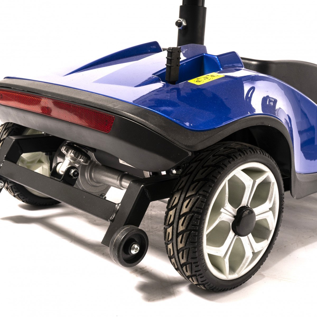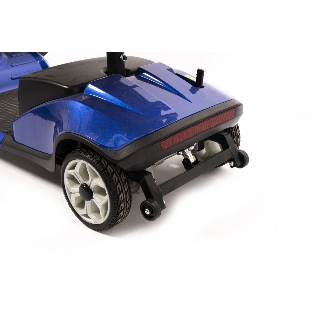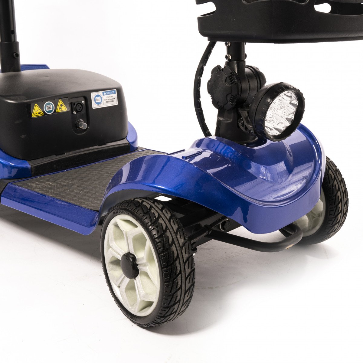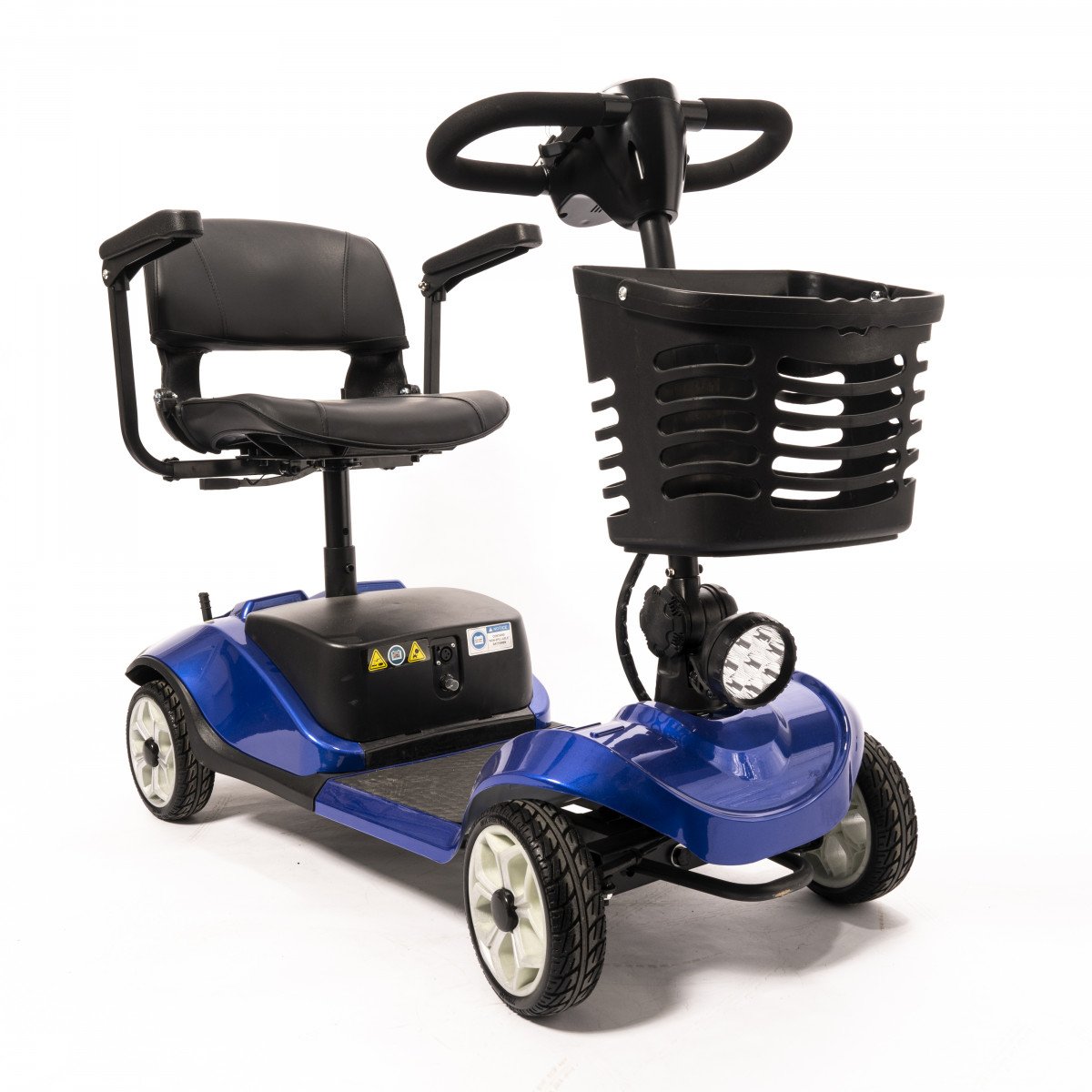 Он оснащён удобным рулём с панелью управления и поворотным сиденьем, которое включает откидывающиеся подлокотники, что значительно упрощает посадку на кресло даже для пользователей с проблемами опорно-двигательного аппарата. На передней панели руля расположены важные функции: переключатель «включить/выключить», индикатор заряда батареи, регулятор скорости, включатель передней фары, звуковой сигнал и акселераторы.