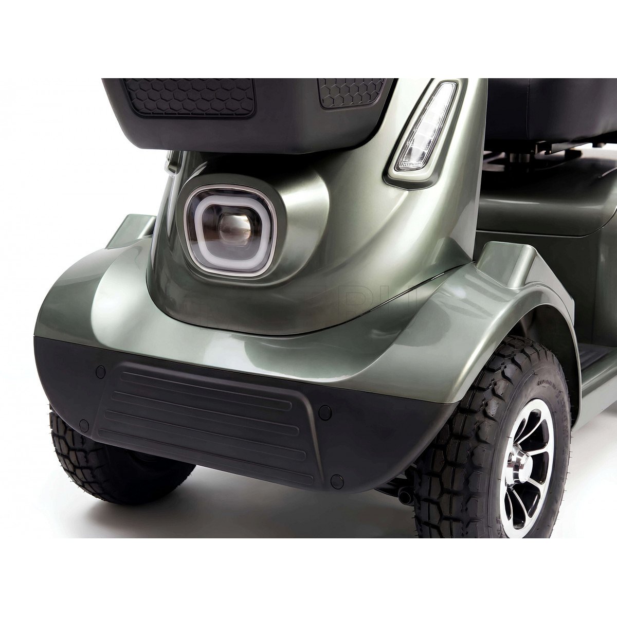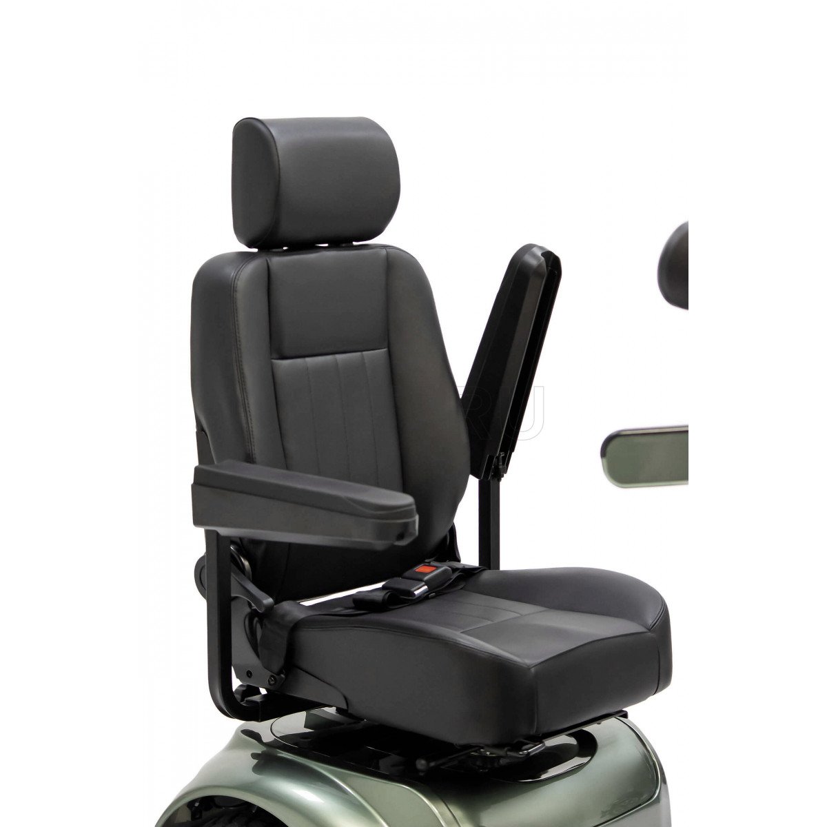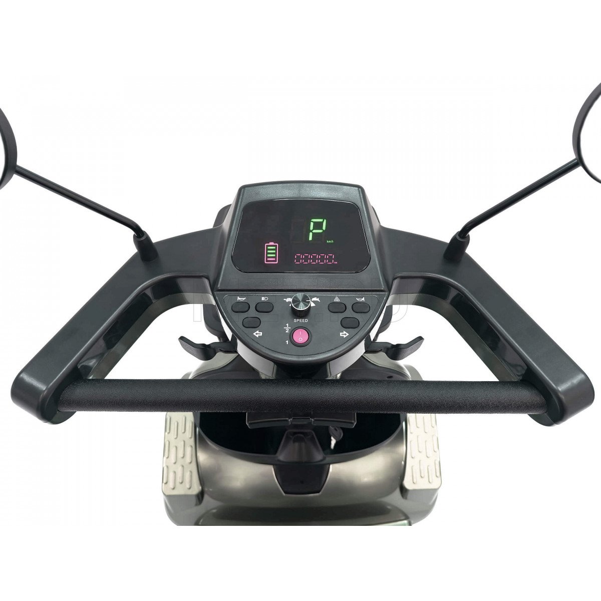 Модель создана для удобства и приятных поездок. В скутер встроены колонки с Bluetooth-подключением — можно слушать музыку или аудио во время движения. Съёмный аккумулятор легко заряжать отдельно, не перемещая сам скутер. Откидные подлокотники облегчают посадку и высадку, а сиденье регулируется по расстоянию до руля и углу наклона спинки, что помогает подобрать удобное положение.