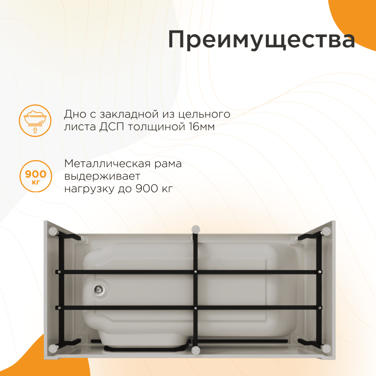 - Металлическая рама гарантирует устойчивость при нагрузке до 900 кг