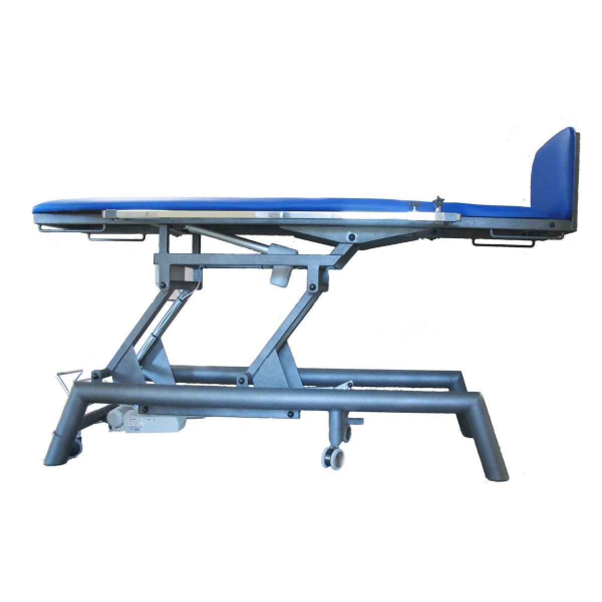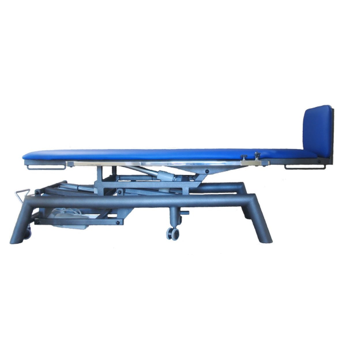 Прочная трапециевидная конструкция каркаса обеспечивает высокую устойчивость даже при активных манипуляциях. Винтовые опоры в ножках позволяют точно выровнять стол на неровном полу, что особенно важно в условиях медицинских кабинетов и реабилитационных залов. Все механические регулировки выполняются плавно и без рывков благодаря пневматическим амортизаторам.
