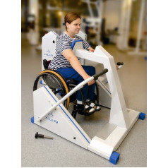 Для пользователей, которые могут перемещаться самостоятельно, предусмотрено приставное сиденье с фиксированной или регулируемой высотой, что позволяет настроить комфортное и безопасное положение для тренировки.