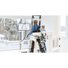 Пользователи в инвалидных креслах могут быть переведены в вертикальное положение и закреплены с помощью специальных фиксаторов, что облегчает процесс реабилитации. LokomatPro также оснащён встроенными датчиками силы для каждого сустава, что позволяет точно настроить интенсивность механической ассистенции для каждой конечности в реальном времени.
