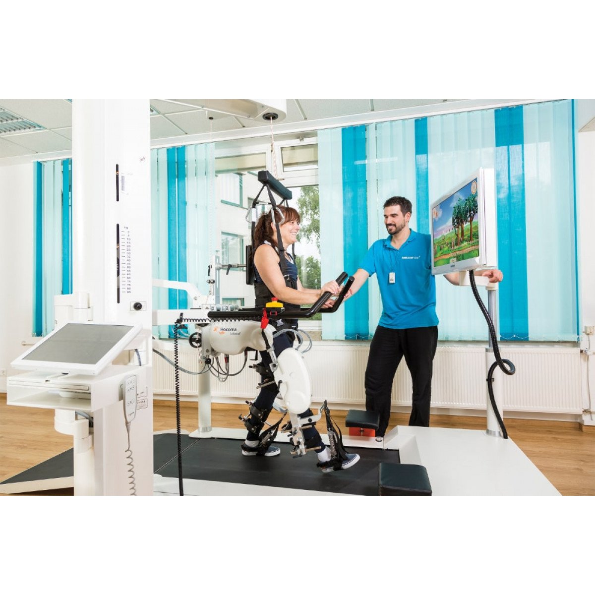 Hocoma LokomatPro (Lokomat Adult) (Хокома ЛокоматПро (Локомат Эдулт)) — это инновационный роботизированный комплекс, предназначенный для реабилитации пользователей с двигательными нарушениями, вызванными неврологическими заболеваниями. Система использует принцип нейропластичности, помогая восстанавливать повседневную двигательную активность и улучшать координацию движений. LokomatPro моделирует естественную человеческую походку, что способствует активации сенсо-моторных сетей головного мозга, отвечающих за ходьбу. Это достигается через систему биологической обратной связи и мотивационных инструментов, включая виртуальную реальность, что помогает повысить вовлечённость пользователя и ускоряет процесс реабилитации.